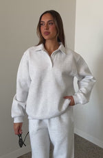 +69 loyalty pointsSlip into pure chill in our Chill Moves Oversized Henley Sweater in Grey Marle! Features a soft fleece interior, oversized silhouette with a collared V‑neckline, button placket, drop shoulders, long sleeves, ribbed cuffs and hem, and a subtle White Fox emboss accent. Style with the matching Chill Moves Wide Leg Sweatpants Grey Marle.