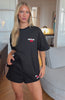 +49 loyalty pointsComfort is an attitude, and this set embodies it. The Club 14 Cassie Lounge Shorts Black is designed with a thin elasticated waistband featuring an internal drawstring tie, side hip pockets, and a relaxed silhouette. The White Fox puff print text paired with cherry graphic at the side adds a signature touch, while the unlined fleece interior ensures a cozy feel. Pair with the matching Club 14 Cassie Oversized Tee and layered with the Club 14 Cassie Boxy Hoodie for colder days.