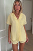Sunday mornings call for banana pancakes and the Cosy Dreams Pyjama Set in Lemon. The short sleeve top features a classic collar neckline, button-front closure and a side pocket, all crafted from a lightweight, breathable fabrication. Paired with matching shorts in a relaxed silhouette and elastic waistband, this unlined set is perfect for easy lounging. Complete the vibe with cosy socks and your favourite slippers.