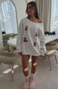 Bring festive flair to your holiday gatherings with the Cuddly Christmas Off Shoulder Sweater in White. This cozy piece features a relaxed off-shoulder neckline, ribbed cuffs, hem, and neckline, and a playful printed teddy bear graphic with "White Fox" text. Its oversized fit and soft fleece interior ensure comfort and warmth. Pair it with the Cuddly & Cosy Pyjama Pants in Sweet Teddy and slippers for the perfect Christmas loungewear ensemble.