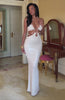 +119 loyalty pointsChannel your inner goddess in the Electric Memories Maxi Dress Pearl! This maxi length silhouette features a chain halter neckline adorned with chunky beadwork which can be worn straight or crossed at the front. Designed with integrated grip tape at bust, and purposeful cut-out at the waist framed with coordinating chains and beads. Crafted from a high‑stretch, lined fabric, it's elegantly backless. Finish the look by making those heels speak and let your layered jewels do the talking.