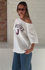 +49 loyalty pointsBRB adding to cart! The Everything In Time Off‑Shoulder Oversized Tee in White features a relaxed, oversized fit with slouchy shoulders and an off‑the‑shoulder neckline, punctuated by a bold printed logo at center front. Pair it with a sporty skort and sneakers for a chic, effortless look.