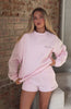 Sprinkle a little sparkle into your day with the Forever Is Ours Oversized Sweater in Cupcake. Designed with slouched shoulders and ribbed hems which round out an oversized silhouette. Featuring long sleeves, and an unlined fleece interior, this hoodie delivers a cozy feel. White Fox printed text embellishes the centre front, paired with a oversized sequin White Fox text centre back. Style with the matching Forever Is Ours Lounge Shorts Cupcake.