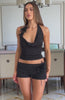 +64 loyalty pointsTHE fit everyone will be talking about...introducing the Let's Ride Mini Shorts Black. Featuring a thin elasticated waistband with a fold over design and side ruched detailing, side flower embellishments, lined material, booty short length and stretch material for an easy slip on design. Complete the look with the Rave Crave Halter Top and kitten heels for a statement fit.