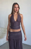 +59 loyalty pointsPolka Dot for or endless summer feels! The Mad At You Halter Top in Choc/Pink Polka Dot features self-tie halter straps, a plunging neckline, and an under-bust seam adorned with lace trim. The fitted silhouette is complemented by a backless design with thick self-tie straps and lace detailing. Crafted from high-stretch, fully lined fabric, this top offers both comfort and style. Pair with the matching Mad At You Maxi Skirt Choc/Pink Polka Dot and kitten heels.