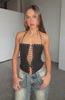 It's all in the details! The Make You My Lover Bustier in Black features thin halter neck straps with self tie closure at back, square neckline with eyelet detailing, corsetry inspired lace up design centre front, paneling to structure the waist and back invisible zipper and clasp closure. Get girls night ready by pairing with jeans and heels!