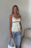 A summer well-spent in the Palm Dreams Top in Cream. Thin, adjustable straps frame a V-neckline trimmed in lace, while a sheer lace under-bust seam adds structure and romance. Its figure-skimming silhouette flows into a low back with self-tie straps, delicate lace at the hem and all in a silky, unlined fabric. Style with your go-to denim jeans and wedges for a chill and chic look.
