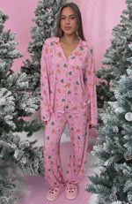 Pillow Talk Printed Long Sleeve Pyjama Set Candy Kiss