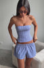 +44 loyalty pointsMake everyday styling effortless with the Promise Me This Shorts in Navy Check. Featuring a thin elastic waistband for comfort, hip pockets, and a relaxed silhouette in a timeless check pattern, these unlined shorts are perfect for warm days. Pair with the matching Promise Me This Strapless Bustier Navy Check.