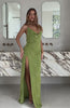 The Slow Dancer Beaded Maxi Dress in Green Tea is your invitation to stand out. Features adjustable spaghetti halter straps, a flattering cowl neckline, daring high side leg split, and fully lined for comfort. The backless design with a cowl drape adds a touch of drama, while the intricate floral beading creates a captivating focal point. Be the centre of attention at any event by pairing with kitten heels and layered jewellery.