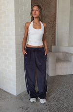 +79 loyalty pointsIgnite your street style with the Soul Fire Pants in Navy. Crafted from velour fabrication these pants feature a thick elasticated waistband with an external drawstring for a customizable fit. The bold stripe detailing along the sides adds a sporty edge, while the wide-leg silhouette ensures comfort. Adjustable toggles at the hem allow you to personalize the fit, and the unlined, super-soft fabric keeps you comfortable. Style with a basic tank and your fav sneakers for effortless fashion.