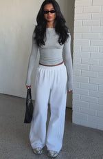 Vibe: street style chic. The Stuck In The City Track Pants in White feature a thick elasticated waistband, wide-leg silhouette, and sporty double-stripe piping down the sides. With an unlined, loop-back interior, they offer relaxed comfort with sleek edge. Style with with a basic top, statement sneakers and shoulder bag for the perfect street style fit!
