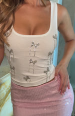 +59 loyalty pointsAdd a dash of dazzle with the Sweet Angel Rib Tank in White! Featuring thick shoulder straps, a square neckline, and a beaded bow accent resting on ribbed, high‑stretch fabric. Pair with a mini skirt and clear heels for an effortlessly chic look.
