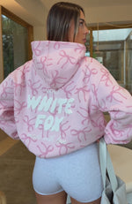 +79 loyalty pointsUnwind in style with our prettiest loungewear yet. The Vol. 1 Oversized Printed Hoodie Posy Bow is designed with a relaxed hood, slouched shoulders and ribbed hems, which round out an oversized silhouette. Featuring long sleeves, a roomy front pocket, unlined fleece interior, this hoodie delivers a cosy feel. White Fox puff‑print text embellishes the centre front and back, paired with a printed "made with love" text and bow design. Style with your go-to denim jeans and sneakers for a cute, cosy weekend fit.