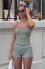 Island attire perfected. The Volume Maxed Knit Top in Chocnana features thin adjustable shoulder straps, a flattering scoop neckline, and a fitted silhouette in soft knit with a bold stripe pattern. Pair with the matching Volume Maxed Knit Booty Shorts, sandals, and sunnies for a chic, sun-soaked look.